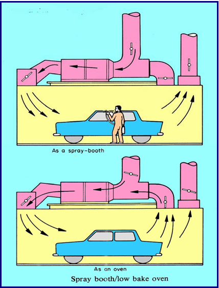 Pemanas berfungsi untuk membantu mempercepat proses pengeringan cat. Sumber panas oven berasal dari pembakaran bahan