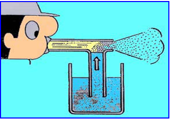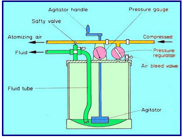 Pada tipe ini aliran udara bertekanan pada fluid tip menghasilkan kevakuman sehingga menghisap cat dari tabung penampung yang berada di bawah keluar bersama-sama dengan udara pada air cup. Kapasitas tangki penampung tidak lebih dari 1 liter, Apabila terlalu banyak akan menyebabkan kelelahan yang lebih cepat selama proses pengecatan