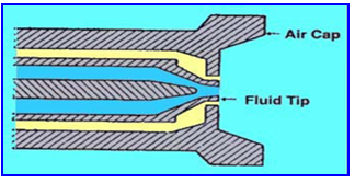 Fluid tip berfungsi untuk mengatur dan mengarahkan jumlah cat dari spray gun ke dalam air streem. Pada fluid tip terdapat suatu taper (ketirusan). Pada saat jarum menyentuh taper ini, aliran cat dihentikan. Apabila cat dikeluarkan, maka jumlah keluaran ini akan tergantung pada ukuran pembukaan fluid tip di saat jarum menjauhi tip.