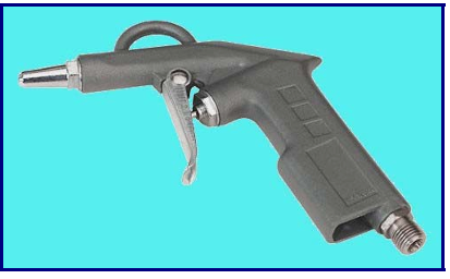 Pistol udara atau air duster gun digunakan untuk membersihkan permukaan kerja dari debu atau kotoran lainnya dengan cara meniupkan udara bertekanan.