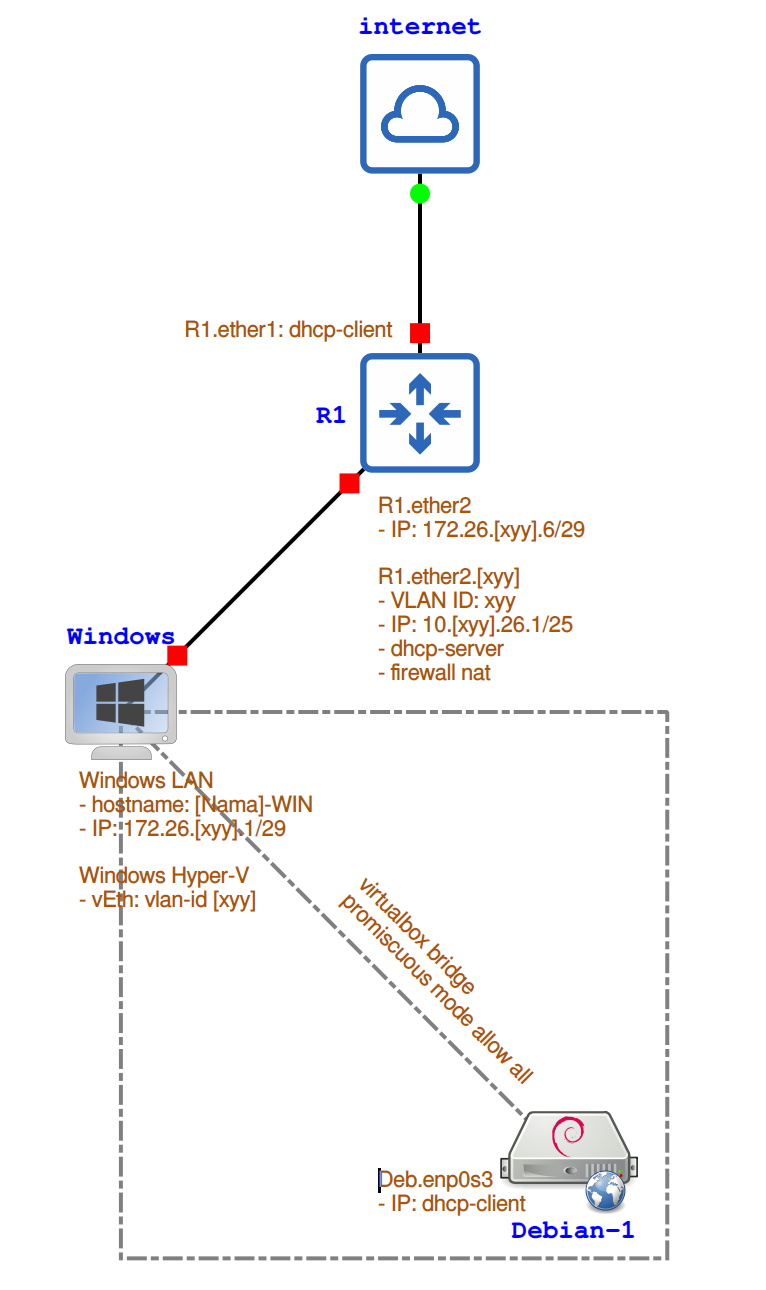- Mengaktifkan virtual switch (Hyper-V) dengan VLAN ID sesuai konfigurasi router.
